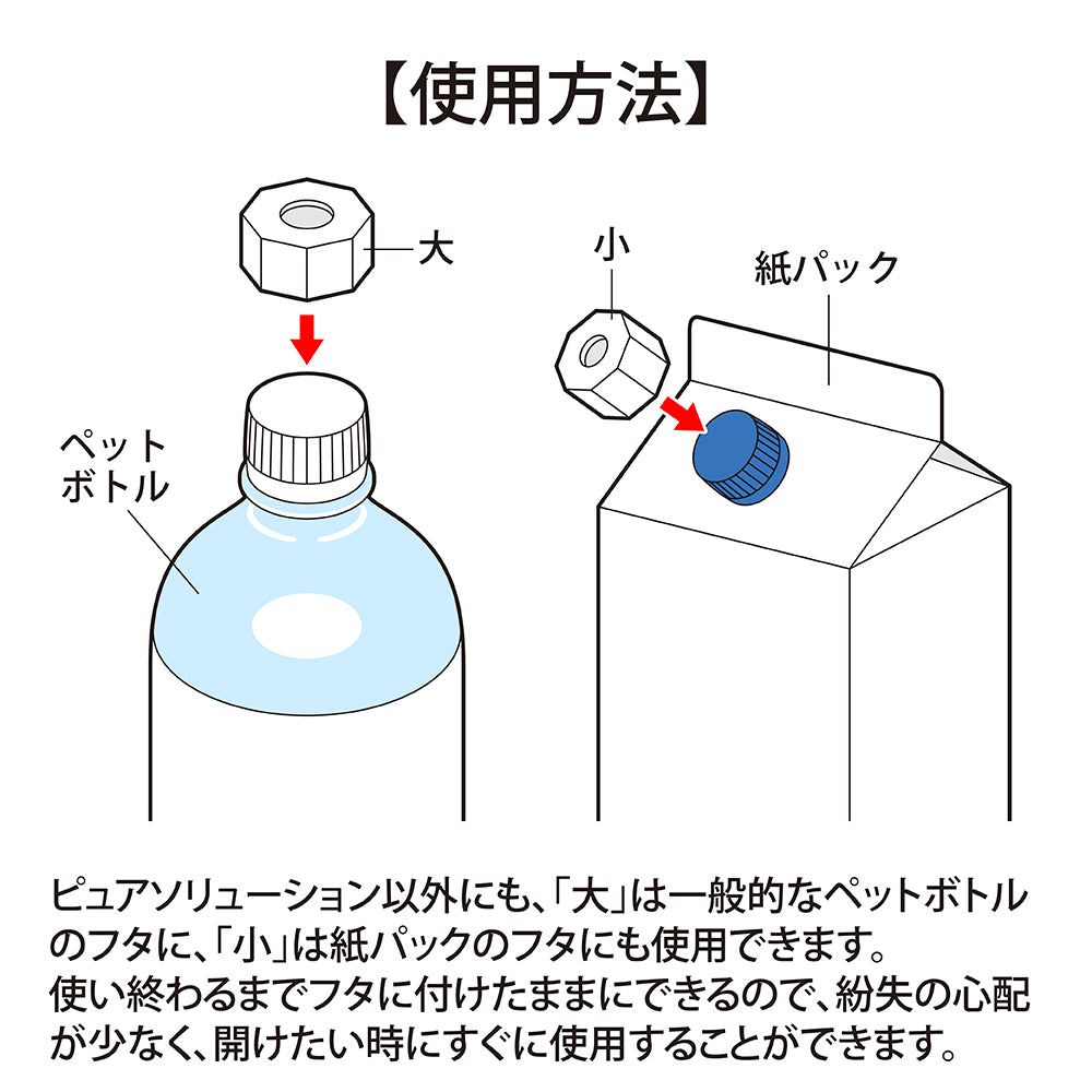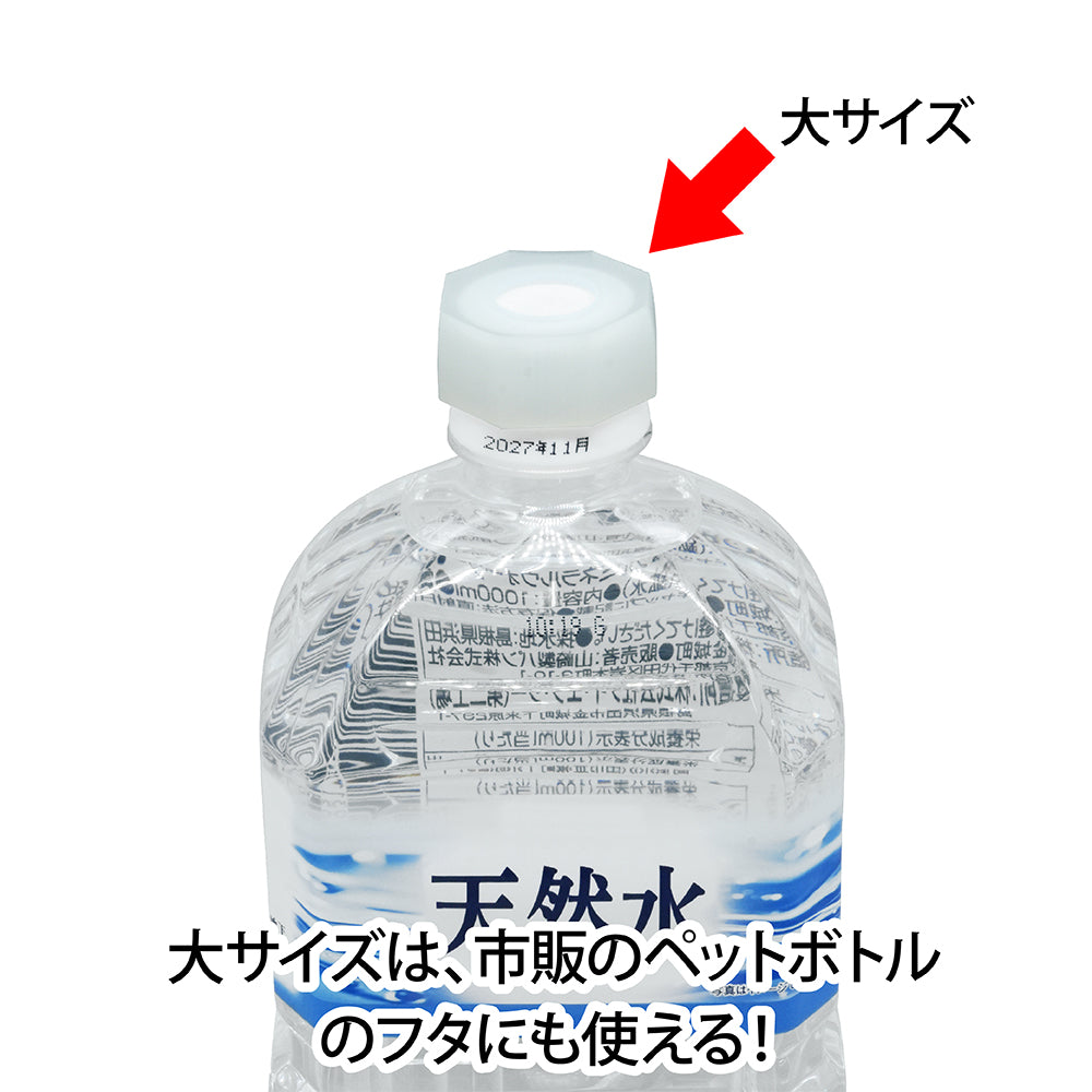 ●〈大〉は市販の一般的なペットボトルのフタにもご使用いただけます。飲み終わるまでフタに付けっぱなしにできるので、紛失の心配が少なく、開けたい時にすぐに使用することができます。