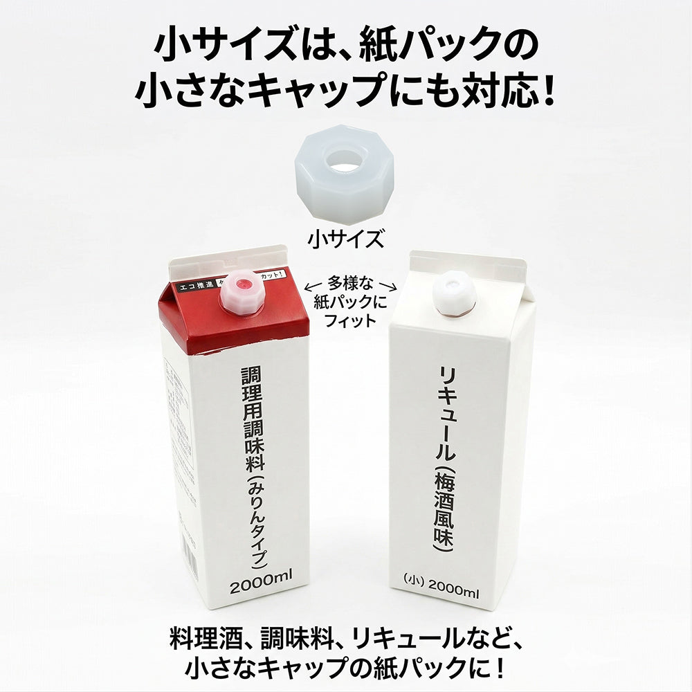 ●〈小〉は市販の紙パック(料理酒、調味料、リキュールなど)のフタにも対応しています。